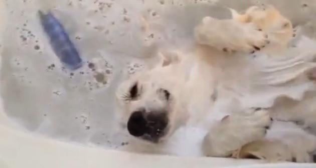http://ohirunotanosimi.darumasangakoronda.com/Entry/2293/泡だらけのお風呂でリラックスしているワンコ (アイドル動画紹介は「美☆少女時代 上原ももか」)